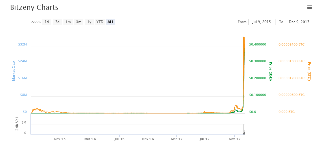 Bitzeny is a type of Cryptocurrency which was launched in 2014. For trading purposes, ZNY is used to represent it. The algorithm used in this currency is Yescrypt which is slightly different from that of GlobalBoost-Y. Like a majority of new cryptocurrencies, Bitzeny was not well known and this partly contributed to it dismal performance for the better part of 2017. When the well known alternative currencies grabbed the market’s attention, this crypto was not to be left behind. The other reason why this currency was not performing as it is now is that not many investors were willing to invest in a market where there is no centralized or government control.