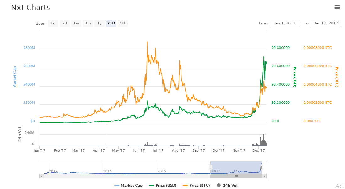 Unlike many newcomer cryptocurrencies of 2017 which are designed to be traded just for the sake of it, Nxt has come to transform crowdfunding and financial technology. Nxt also helps in the governance of industries which includes Nxt cryptocurrency and a modular tool-set to build with. Its users have the freedom to create their very own and customized applications. Currently, the market capitalization of Nxt is $667.64 million. On 12th December, the price was $0.668.