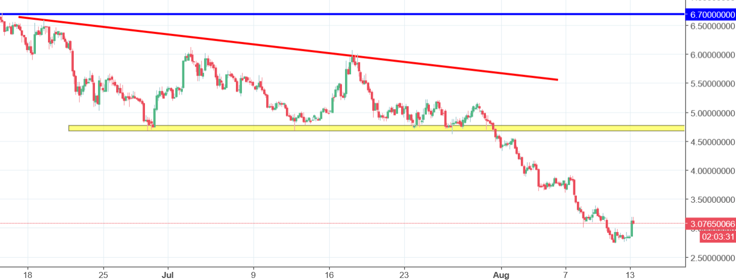 Digix from the previous analysis was trying to climb higher but LISK, from this piece, is really doing that. As for now, we are up almost 10% but is this upswing sustainable and can it be a start of something bigger? In our opinion no but first, let us look at the previous piece about this coin, written on the 24th of July:
