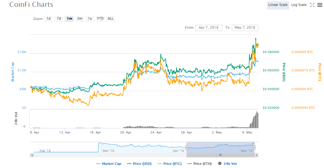 Not much of a change has been seen in the market cap of this crypto. On Feb 28th, the figure stood at $14 million and it was $11 million on May 6th. At the same time, the market cap of the COFI was averaging $15 million. The traded volume was $3.4 million up from $204,000 on May 5th.