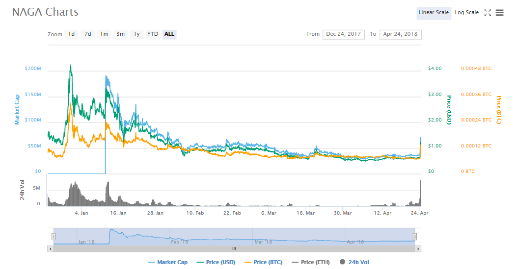 Immediately after the ICO in December, the price of NGC was $1.6. The price later rose to reach $3.7 on January 11th, 2018. At the time, this was the trend for a majority of the major cryptocurrencies. On that day, the volumes traded were in excess of $6 million. The market cap of the token reached an all-time high of $174 million two days later. The value of the crypto has since dropped to close at $0.6 on April 24th. The NGCs traded were valued at $3 million while market cap stood at $34 million.