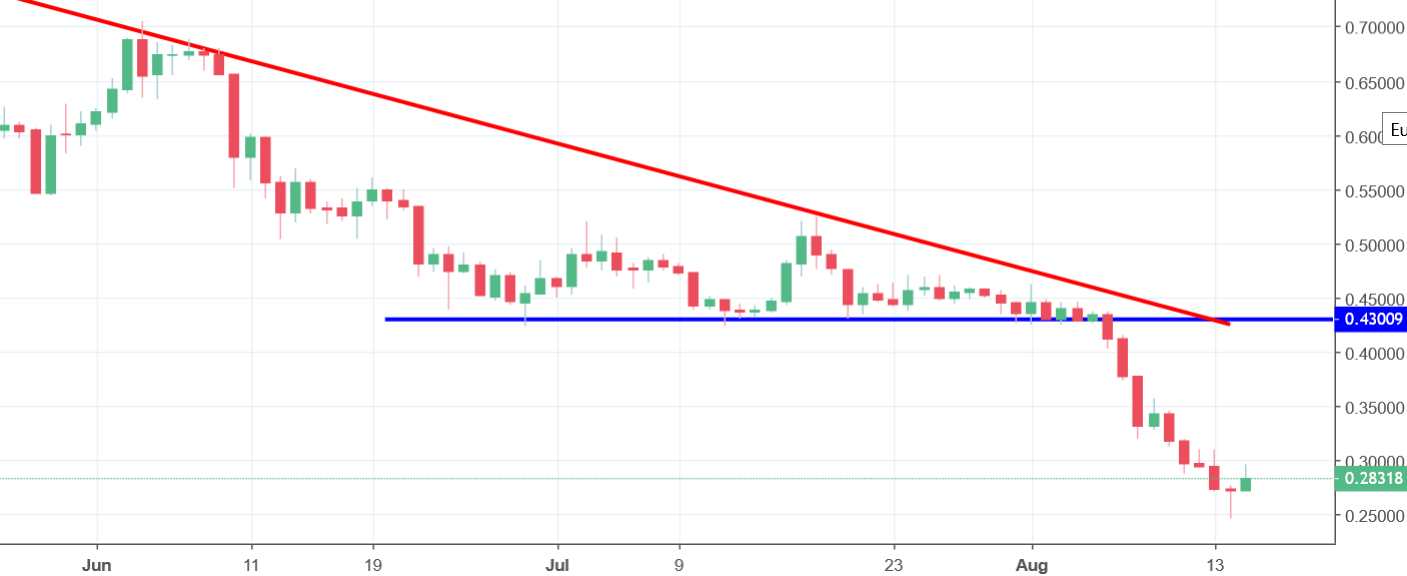 Wednesday starts with a small update of the analysis from the 8th of August. Exactly week ago, we were talking about Ripple, where the price was going down sharply. We know that many people were looking for a place to buy but this game is very risky and that was our opinion about it: