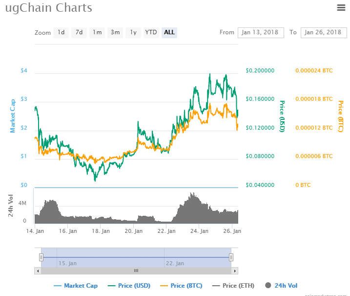 On the exchanges, the coin started 2018 at a high price of $0.15. The market cap was at zero on 13th January. On January 24th, the price reached the highest mark of $0.2. The price has since fallen to $0.14 as of 0900 CET, January 26th. Market cap for the coin remains zero but the volumes moved stood at 2.69 million as of 25th January.