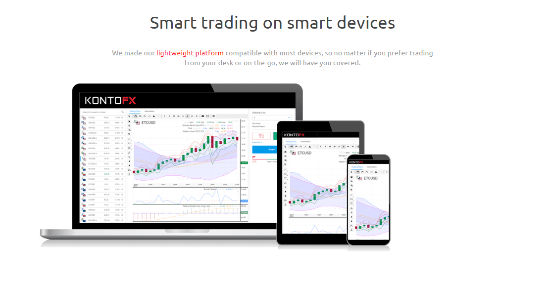 As we have already mentioned, the KontoFX WebTrader is the only way traders can open/close their positions on crypto-assets; there are no MetaTrader programs, not even cTrader for the sake of diversity of the options.