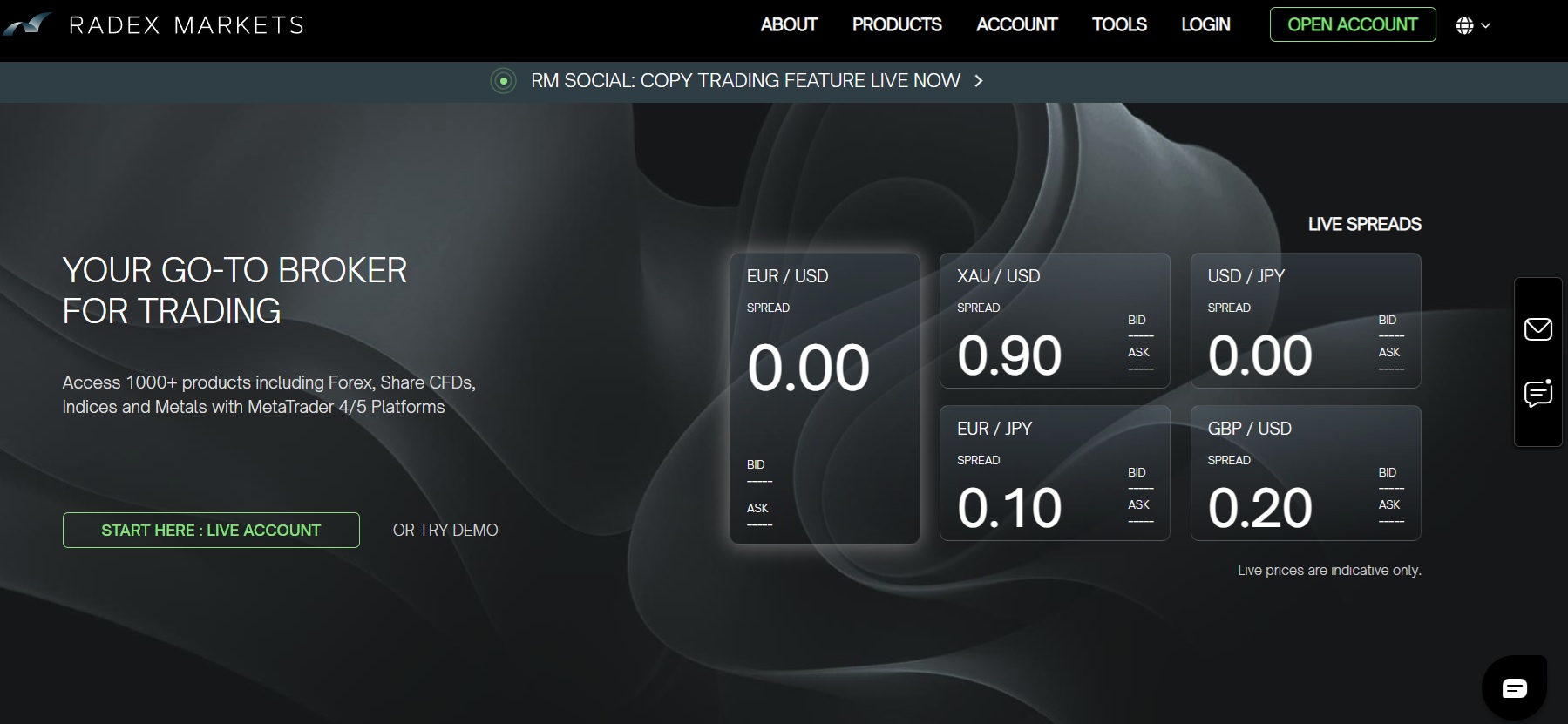 The website of Radex Markets is modern in design and offers a user-friendly interface. It is simple to navigate and find what you are looking for, as there are several buttons and accounts, and many other details are directly available on the main page. However, this lack of buttons and a well-ordered menu is also a minor drawback for the website. There are several plugins built into websites, like live chat and feedback, enabling users quick access to customer support, which is very flexible. While there are some details missing, the website overall is satisfactory and responsive. It is not crowded with much unnecessary information or media, and responds quickly to user requests.