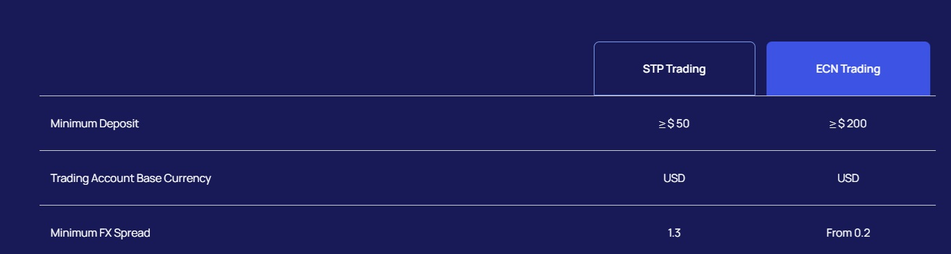 The broker has three accounts on its website, but actually offers two. There are ECN and Standard accounts available. The standard account is for general forex trading purposes, while ECN offers lower spreads.